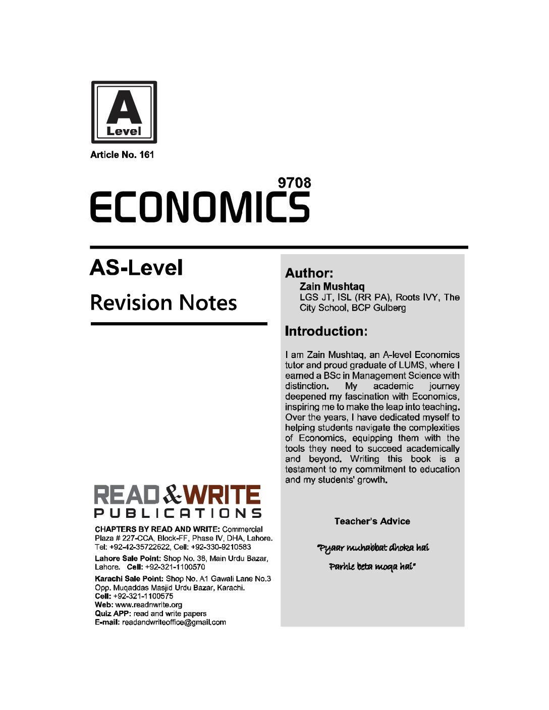 Economics As Level Revision Notes Series By Zain Mushtaq