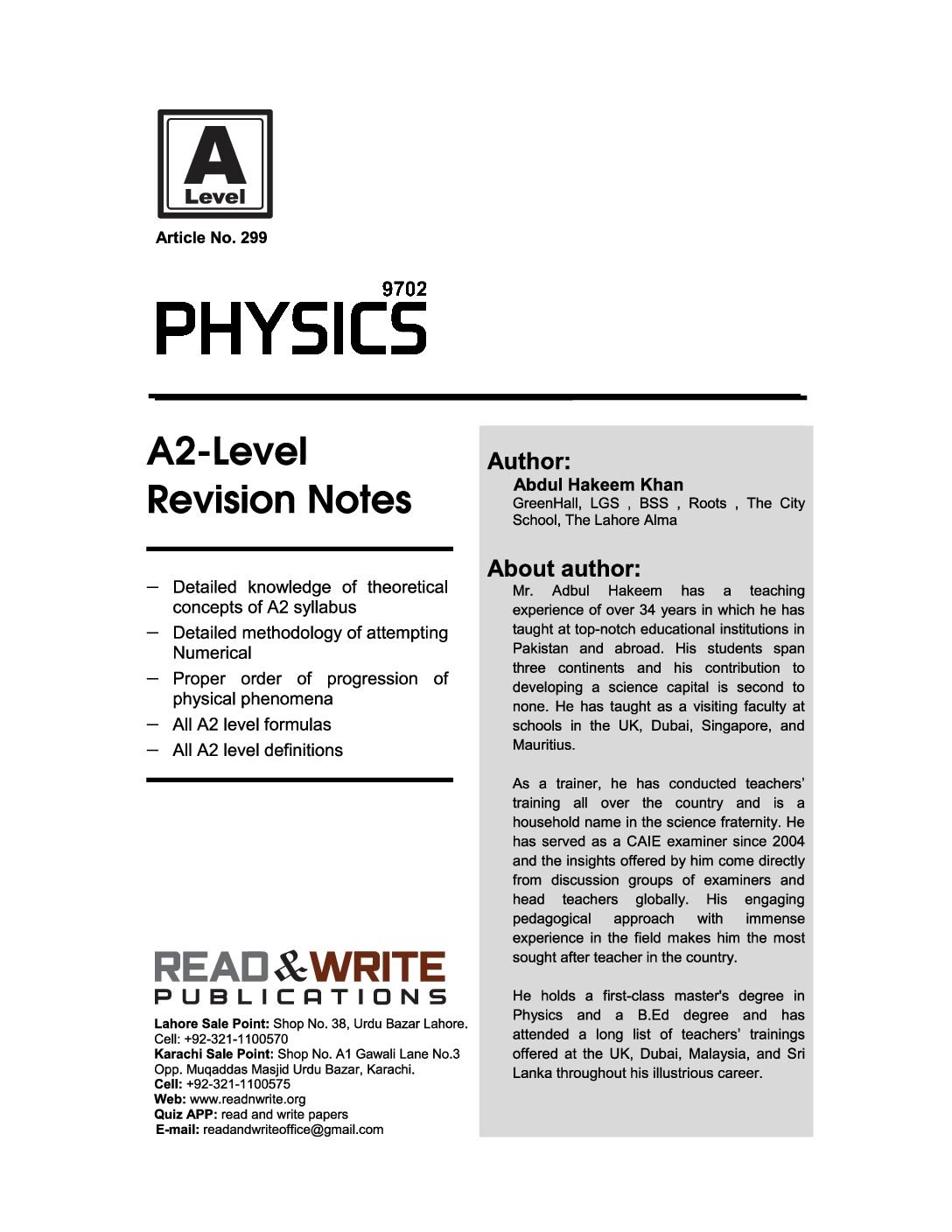 Unlock the secrets of A-Level Physics with the comprehensive “A-2 Physics Revision Notes Series” by Abdul Hakeem Khan. Catering specifically to the AS syllabus, this essential guide is the key to understanding complex theories, mastering intricate calculations, and excelling in your exams.