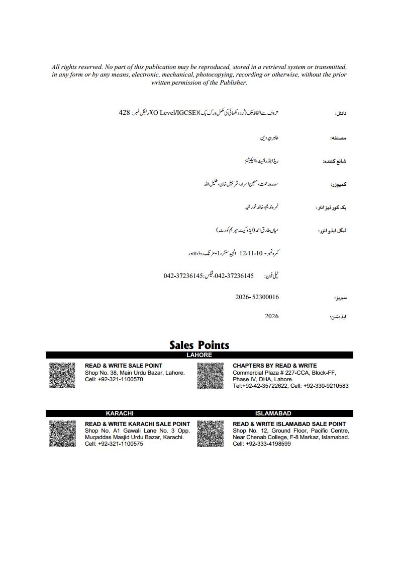 428 Haroof Sy Alfaaz Tak Urdu Workbook For O Level/IGCSE
