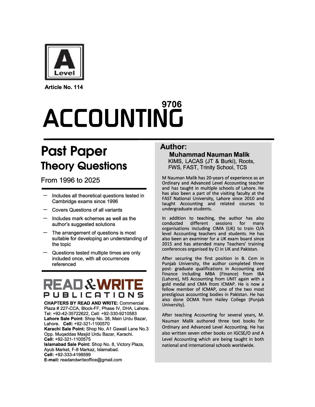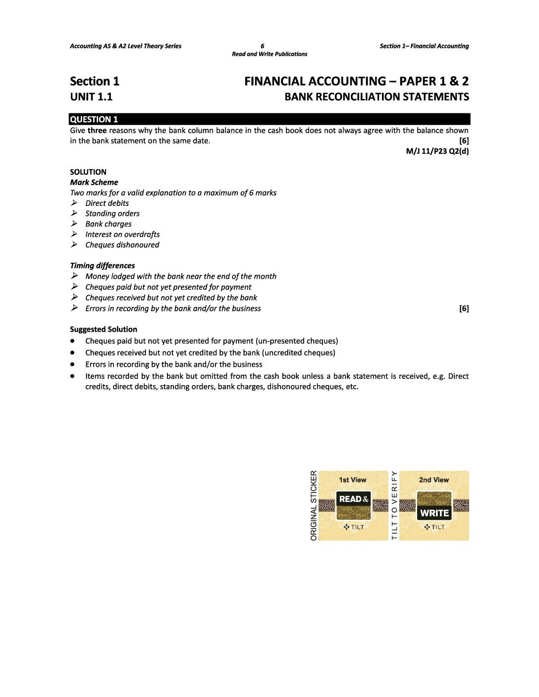 SECTION 1 FINANCIAL ACCOUNTING – PAPER 1 & 2