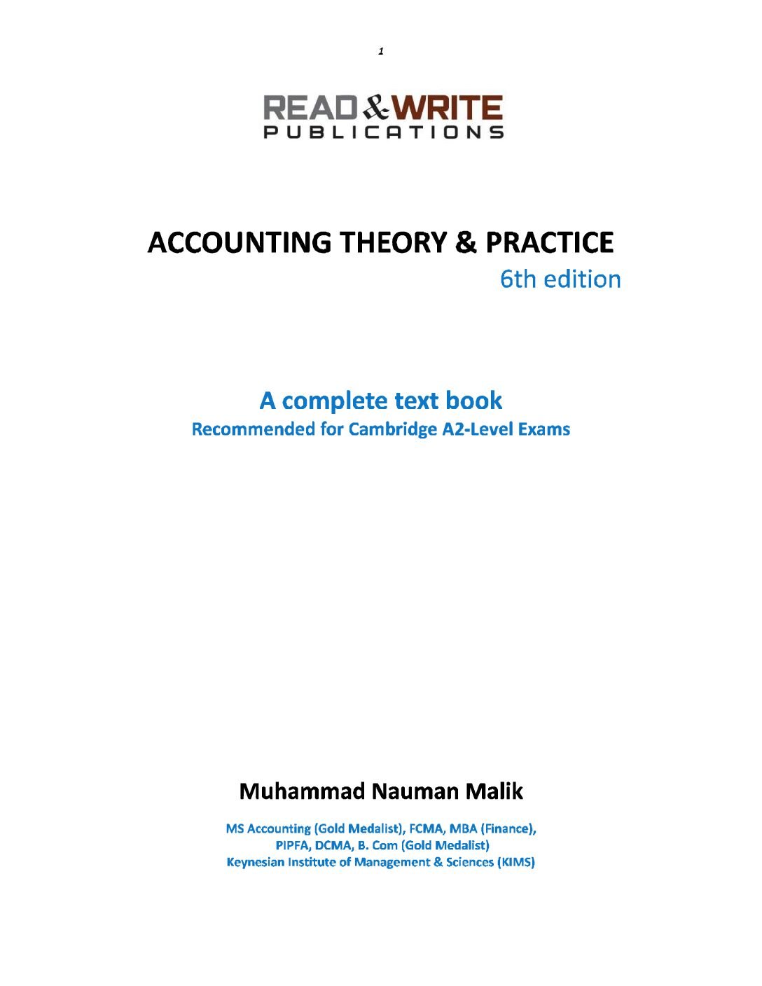 In addition solutions to even numbered questions are available in a separate manual. Teachers using “A2 Accounting – Theory & Practice” as a text book, may get the manual by applying officially on a school letterhead. Providing the students with a solid foundation in the “Why” as well as the “How” of accounting concepts, the emphasis is put on understanding rather than mere cramming.