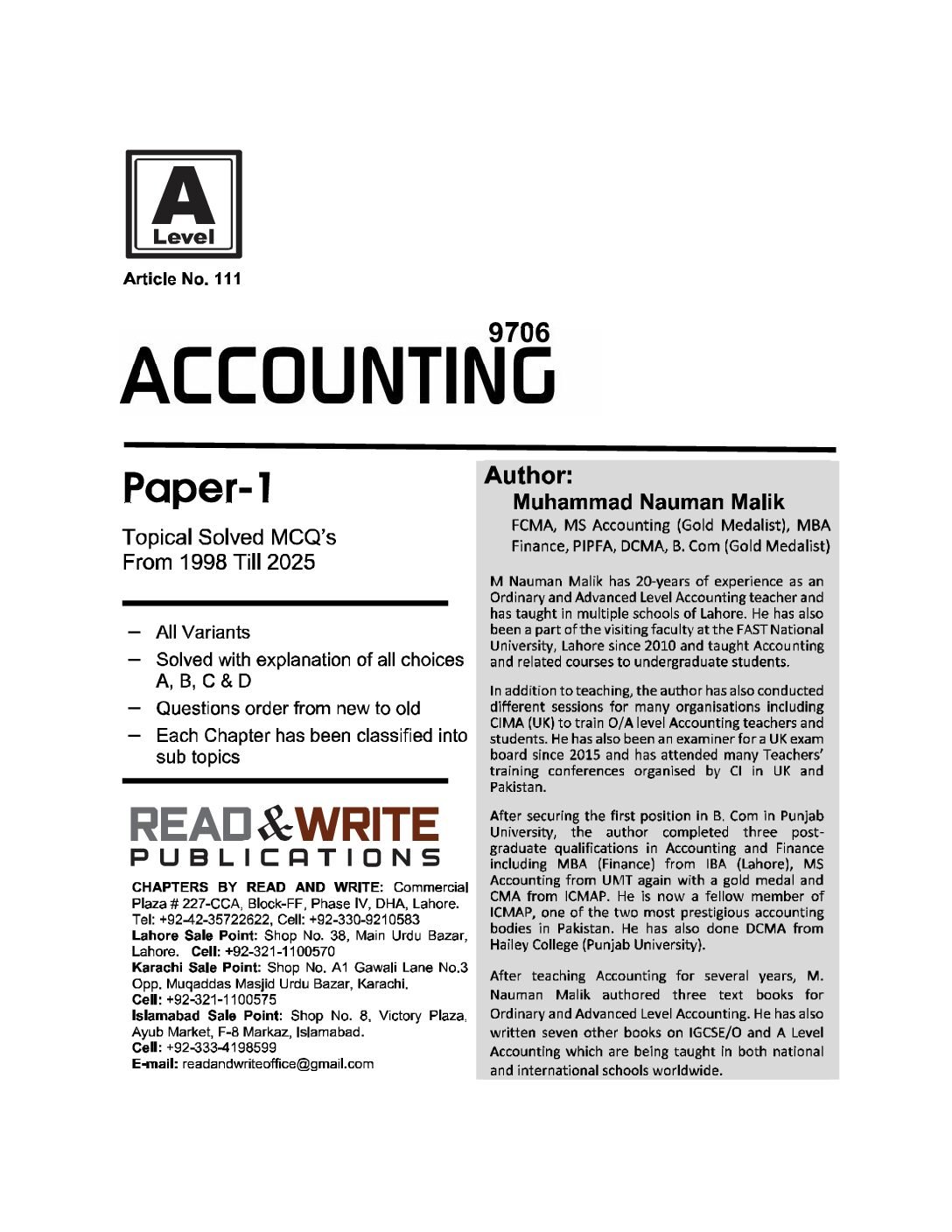 111 Accounting AS-Level MCQ’s Paper-1 Topical Worked Solutions