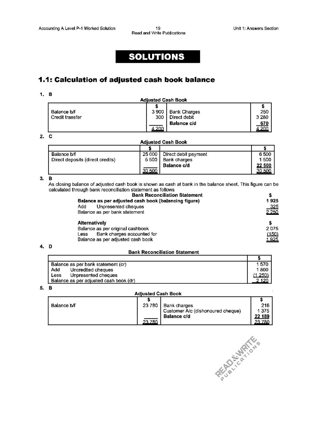 1.1: CALCULATION OF ADJUSTED CASHBOOK BALANCE