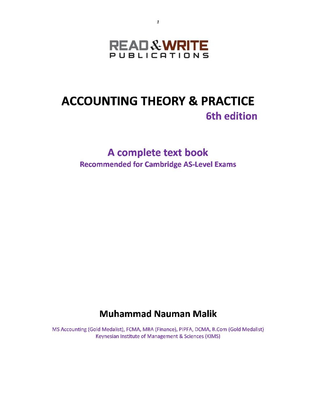 This book Accounting A Level Theory and Practice Article Number 115 is intended to cover the accounting content of CIE Advanced Level syllabus 9706 comprehensively. With a thorough discussion of the basic double entry principles for the beginners, it is also useful for those who have some knowledge. (Accounting AS Level)