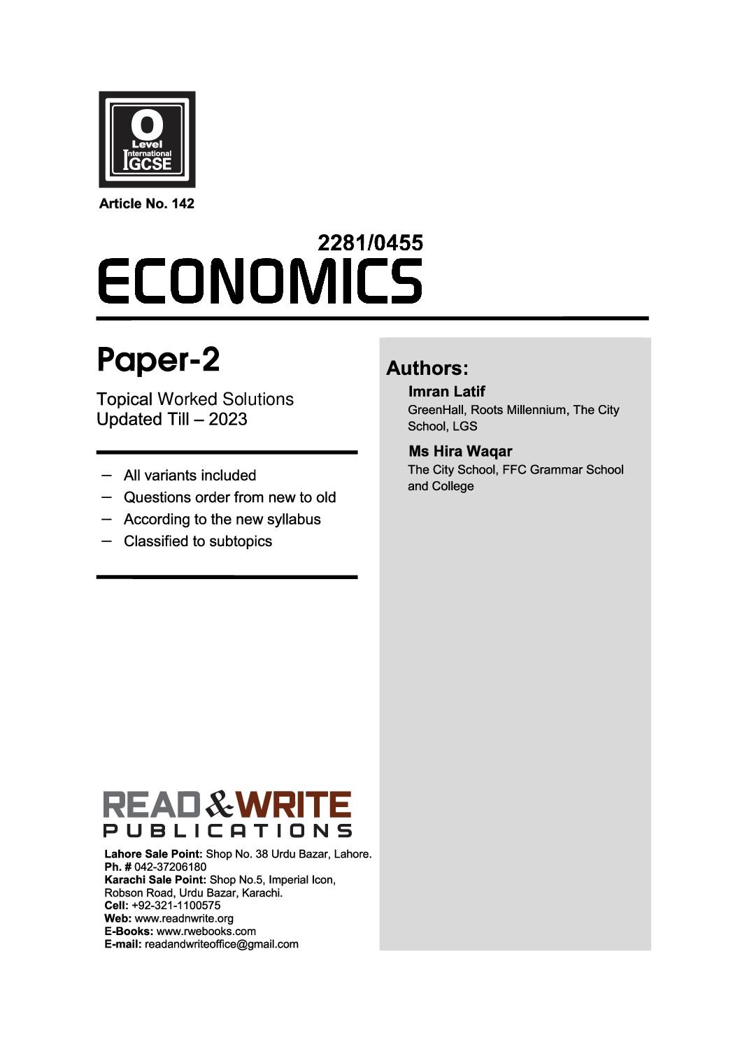 142 Economics O Level Paper 2 Topical Past Papers by Imran Latif is a highly beneficial book designed to assist students in their preparation for the O Level Economics Paper 2 exam. This comprehensive collection comprises a wide range of past papers that cover key topics including national income, inflation, unemployment, economic growth, and international trade. Each section of the book contains multiple past papers, accompanied by detailed mark schemes that offer comprehensive explanations on how the papers should be assessed.