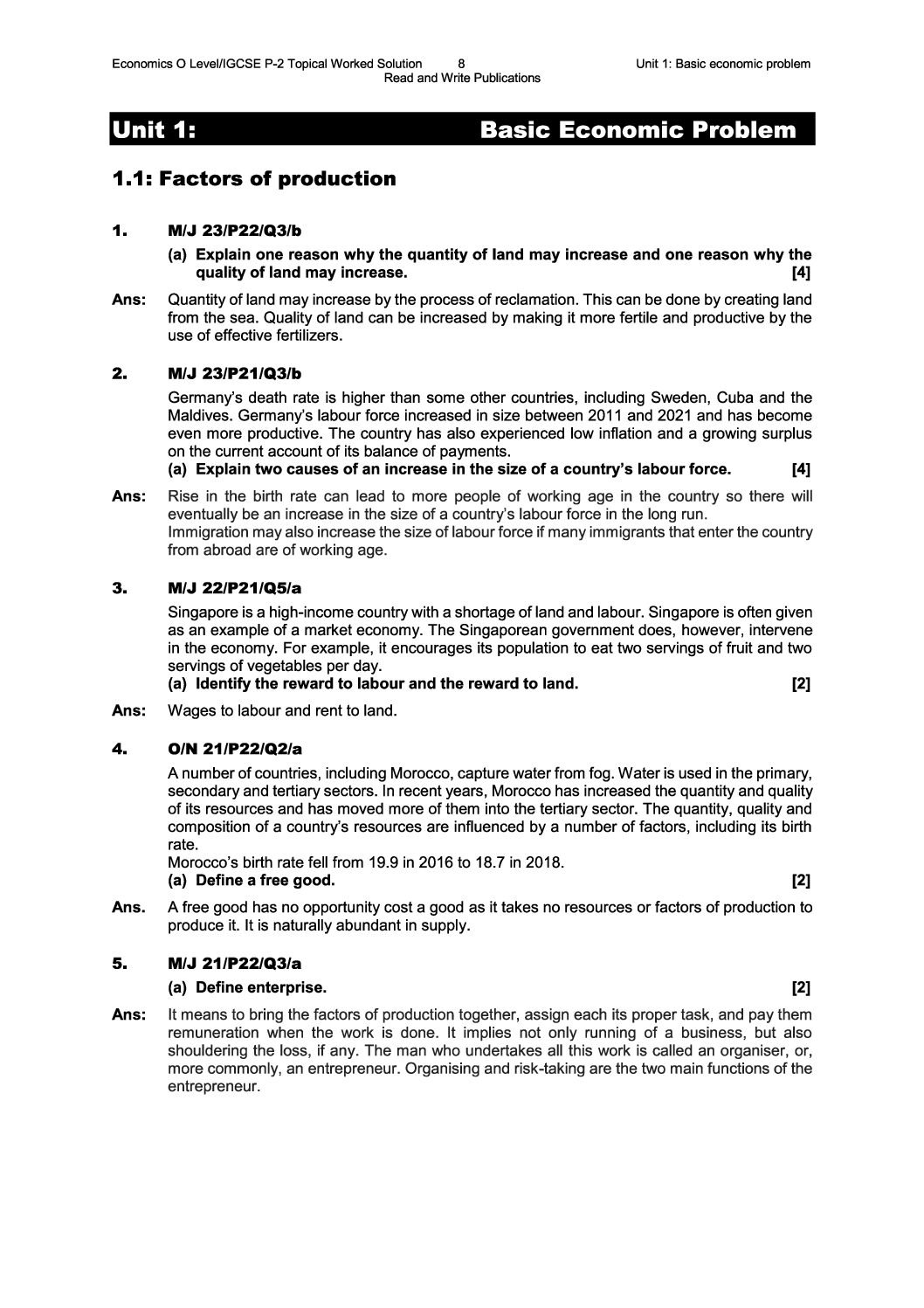 Economics O/IGCSE Level Paper 2 Topical Worked Solutions By Imran Latif
