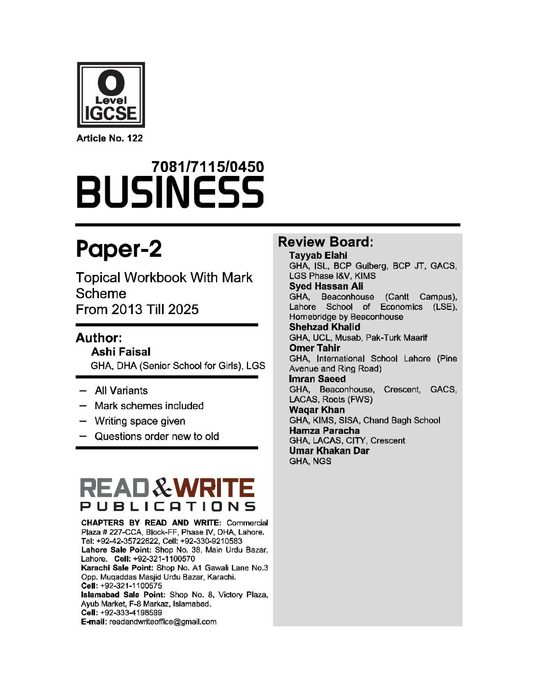 Business Studies O Level/IGCSE Paper 2 Topical Workbook by Ms. Ashi Faisal