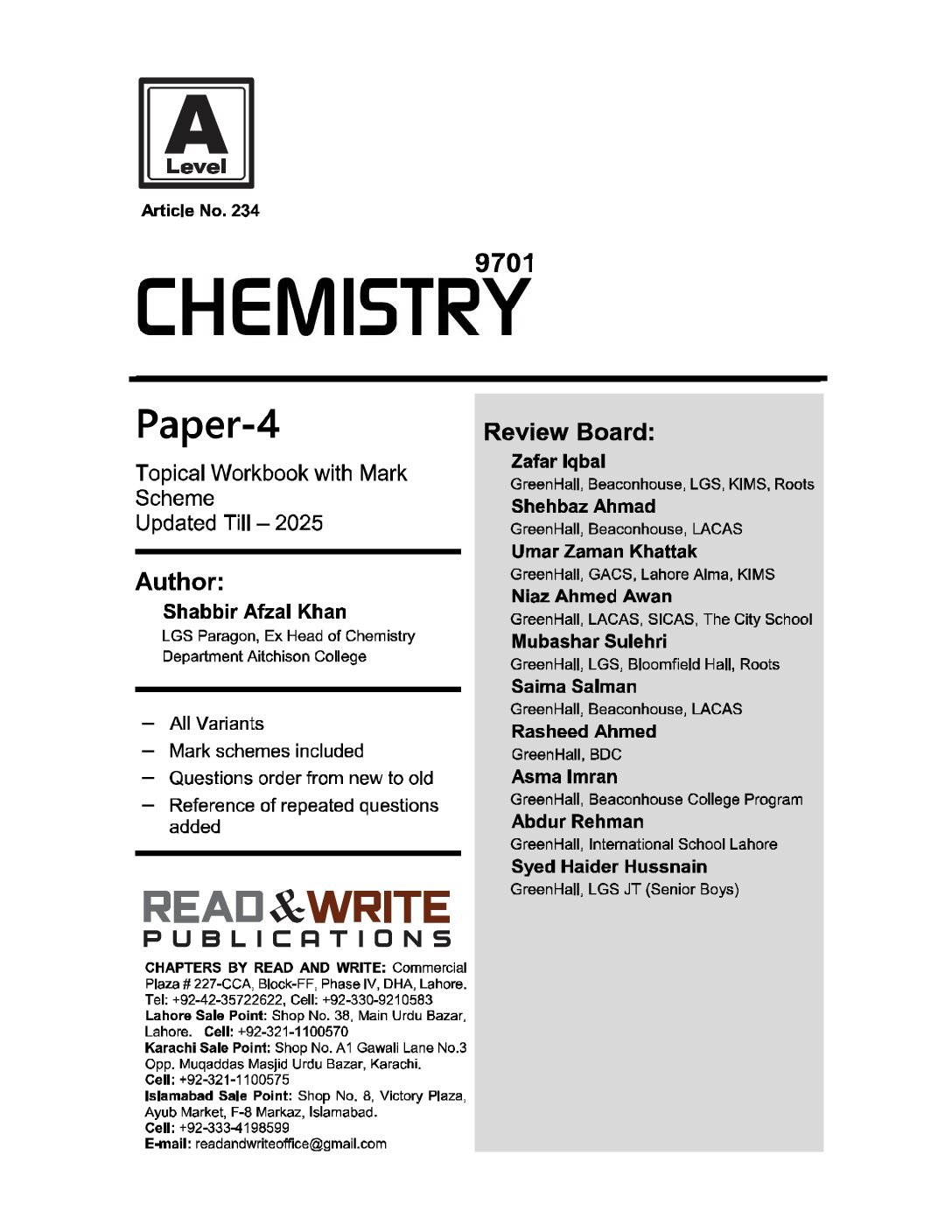 234 Chemistry A Level Paper 4 Topical Workbook and Past Papers
