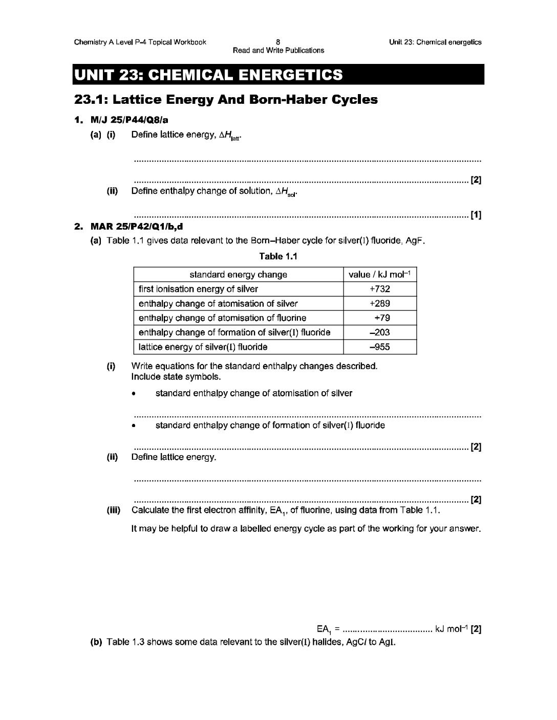 UNIT 23 CHEMICAL ENERGETICS