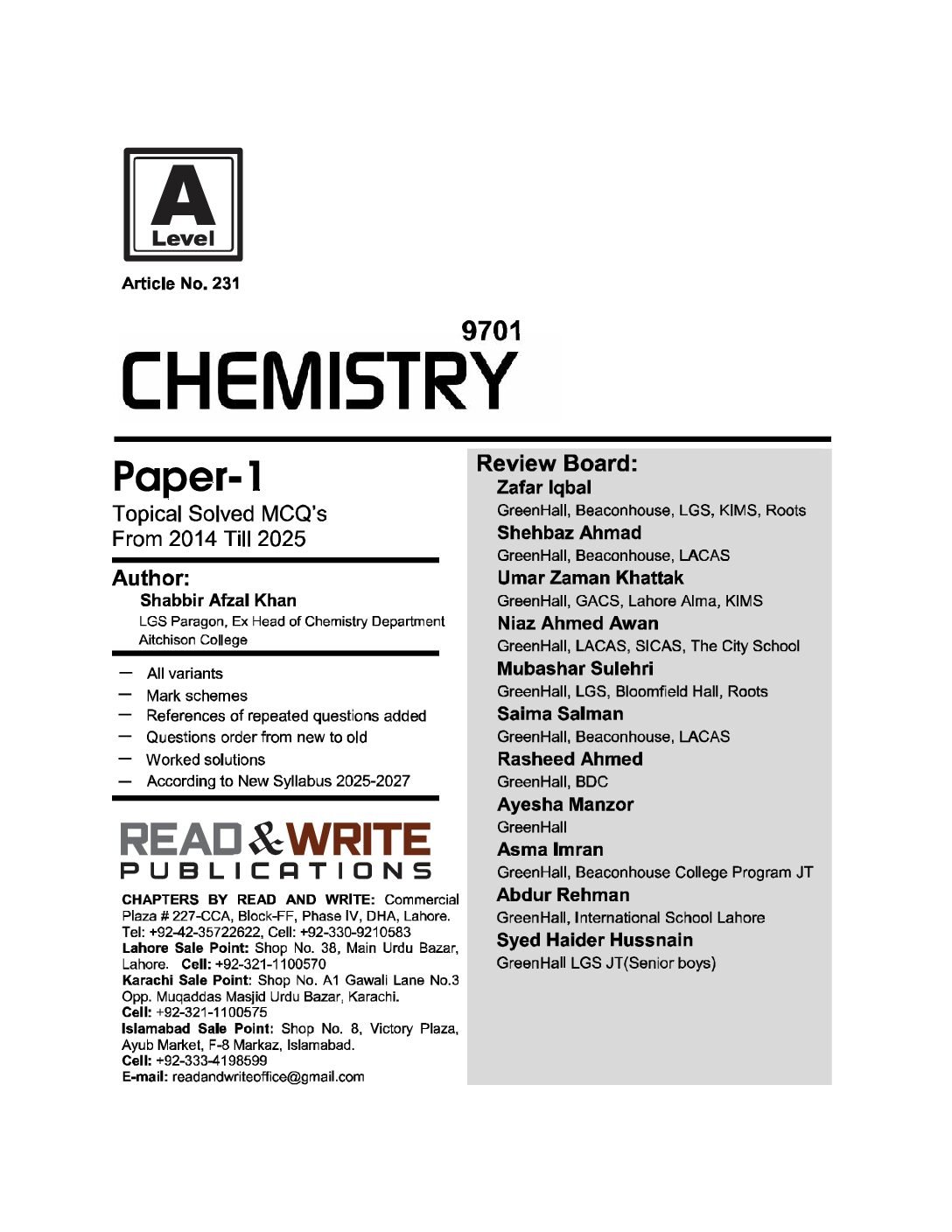 231 Chemistry AS level Paper 1 Topical Solved MCQs
