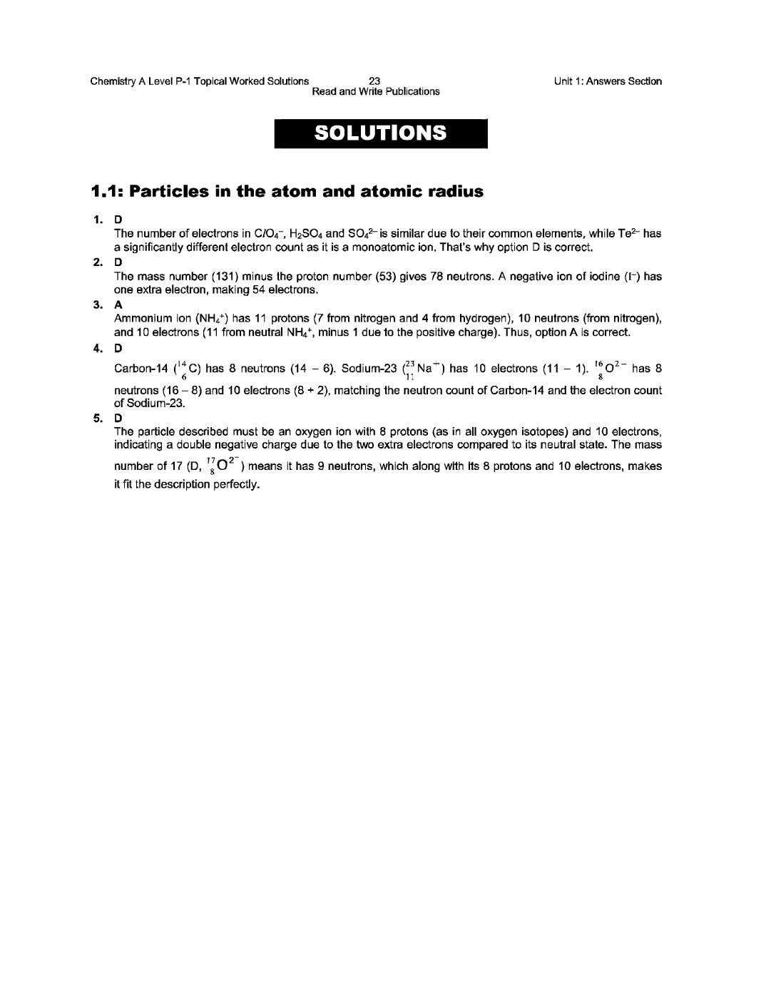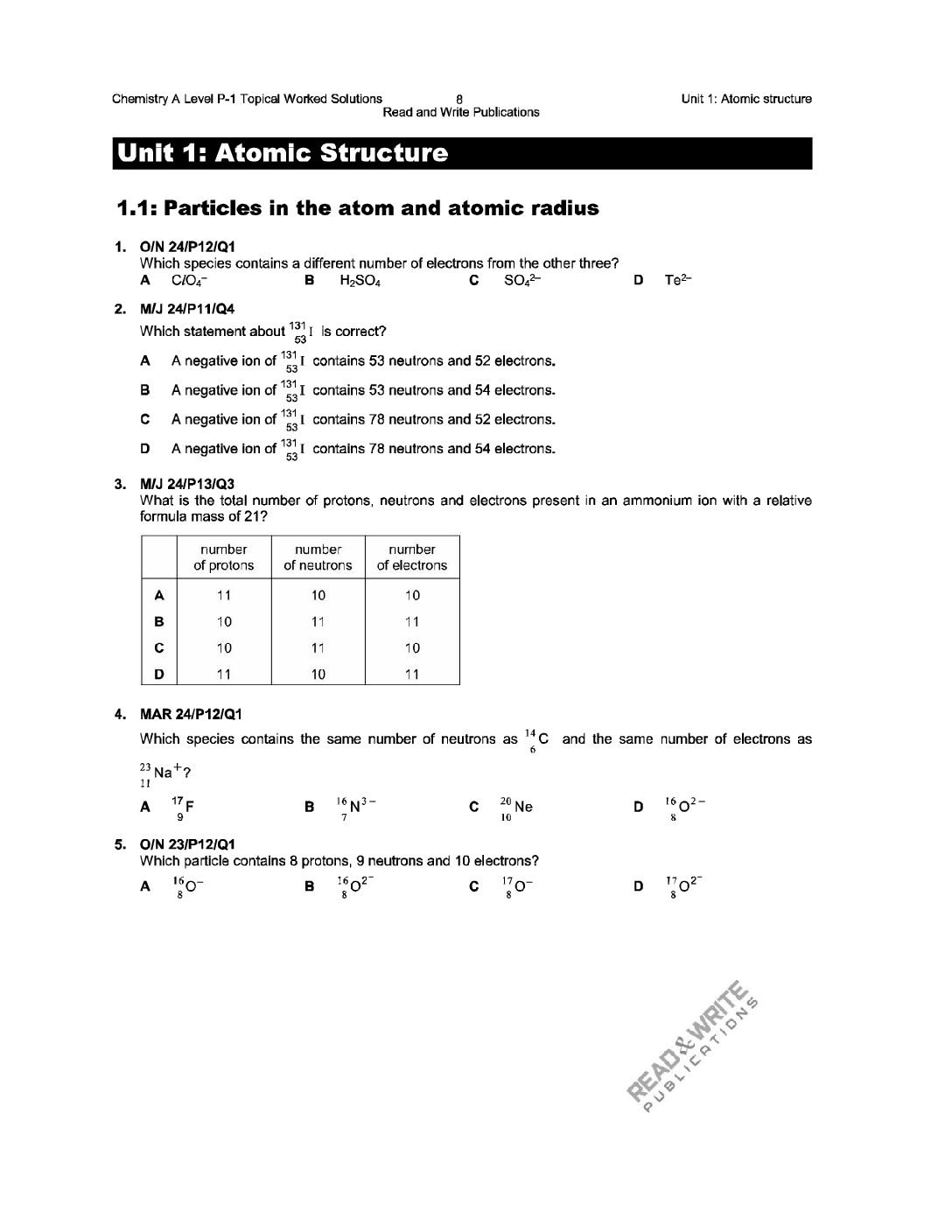 1.1 Particles in the atom and atomic radius