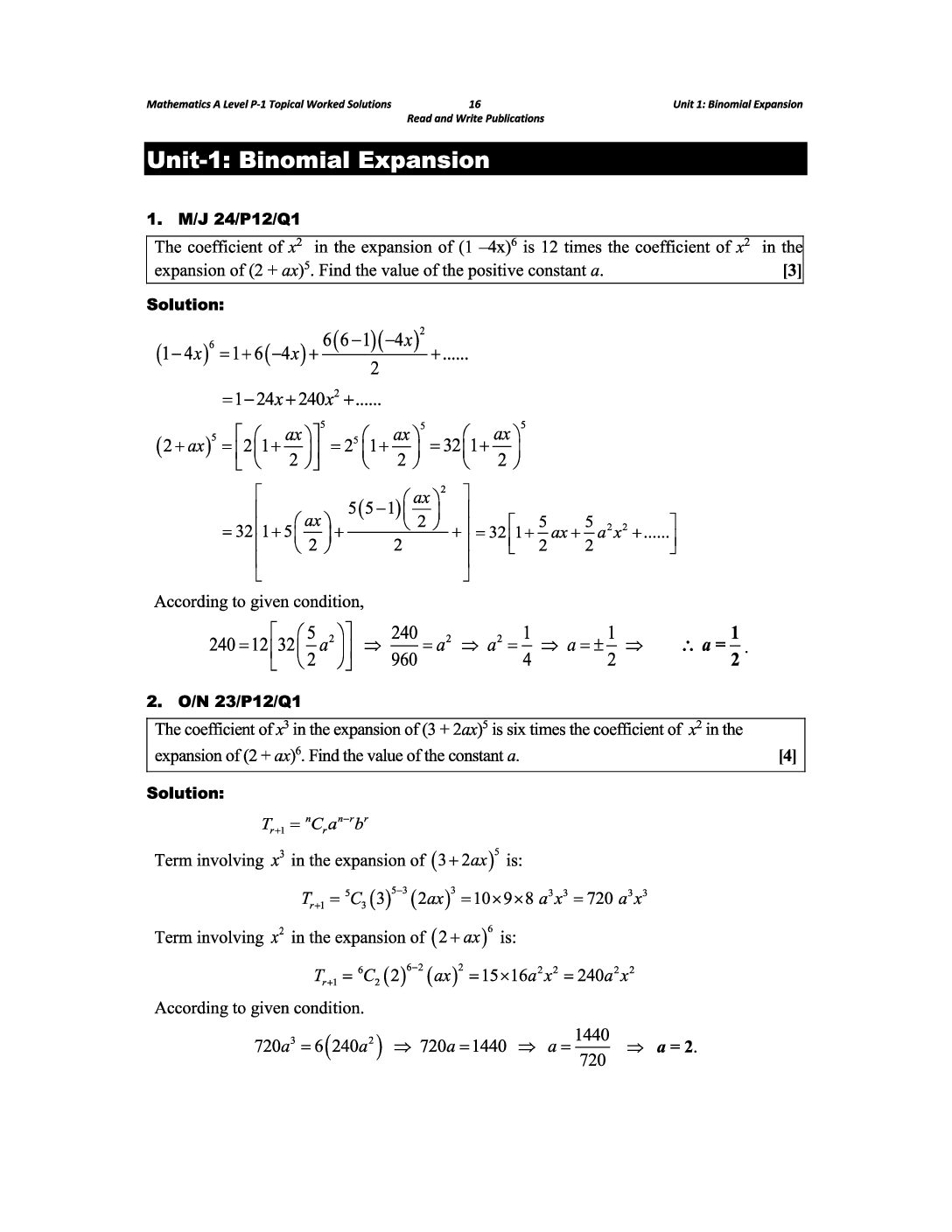 UNIT 1: BINOMIAL EXPANSION